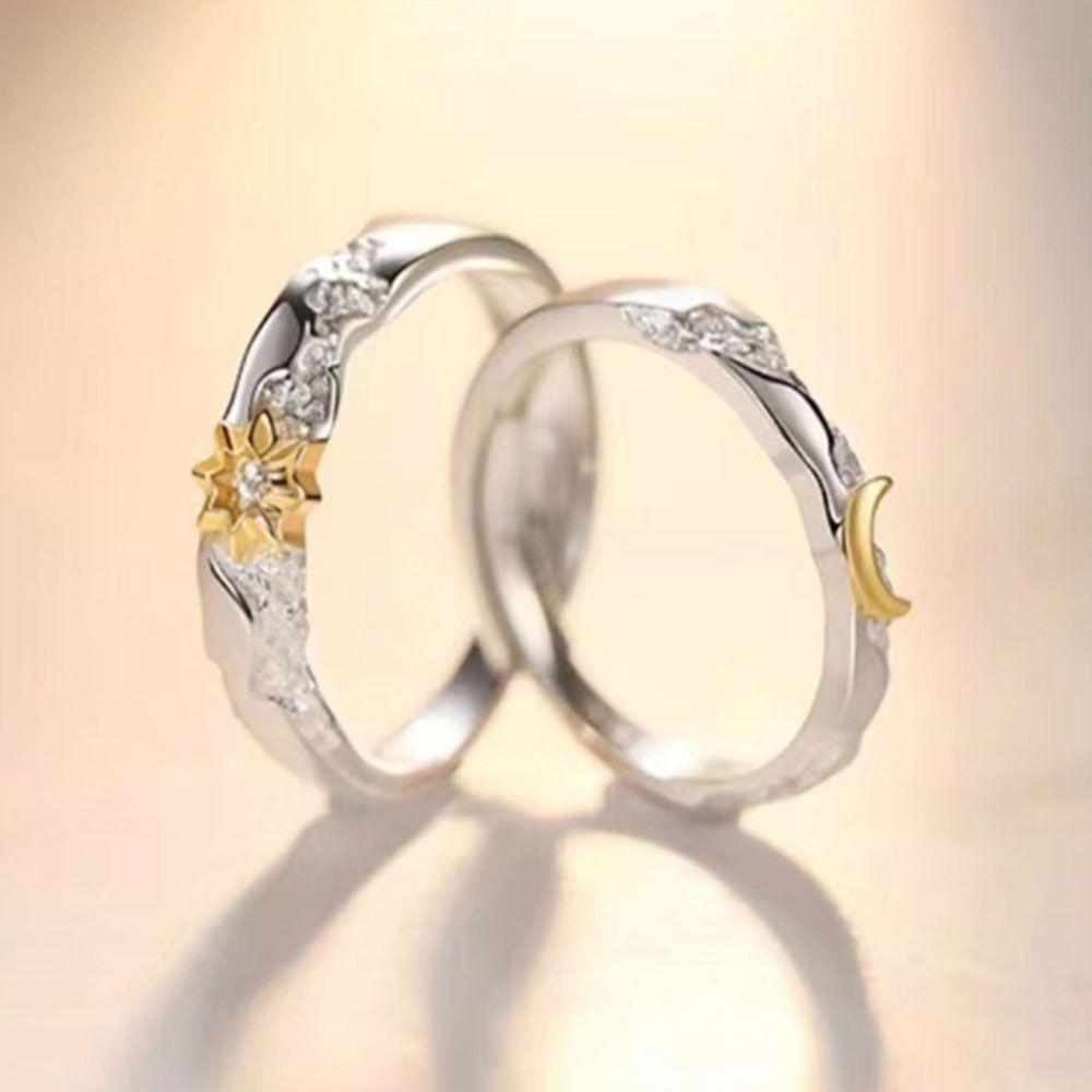 Sparkling Sun Moon Couple Finger Ring Stackable Matching Rings Adjustable Open Rings Couple