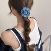 Denim Blue Women Vertical Clip Camellia Floral Twisted Hair Clip Flower Banana Clips Daily