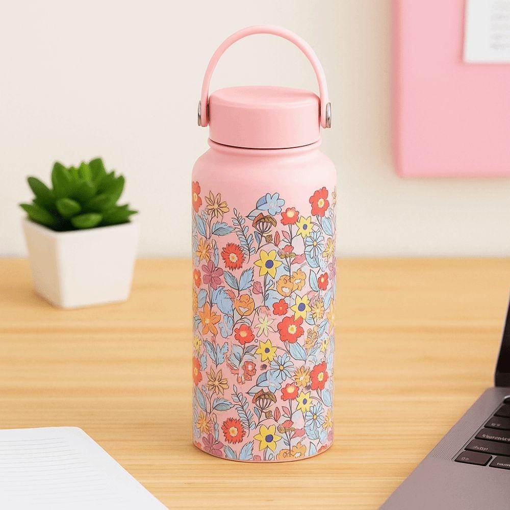 1L Outdoor Insulated Mug Creative Floral Insulated Bottle Drinkware Thermal Water Bottle Household