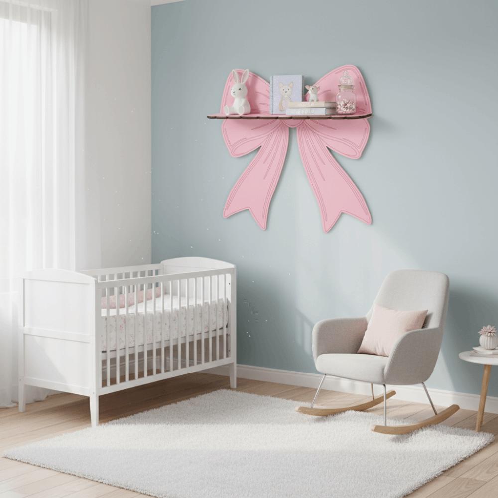 Pink Bow Wall Mounted Shelf Wooden Holder Wood Storage Rack Wall Storage Holder Housewarming Gift