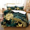 3D Digital Printing Quilt Cover Tropical Plant Green Leaf Flower Three-Piece Set Abrasive Bedding