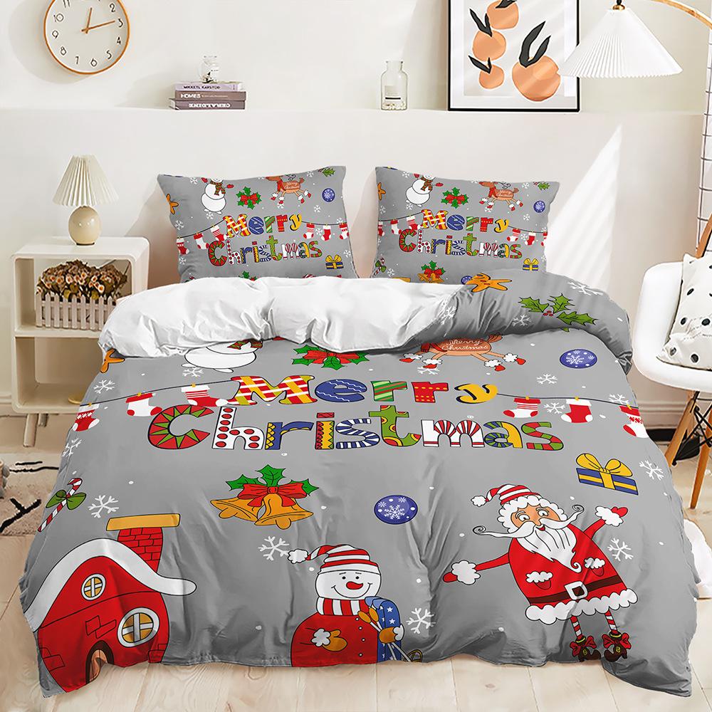 Bed Three-Piece Christmas Elk Quilt Cover 3D Digital Printing Kit