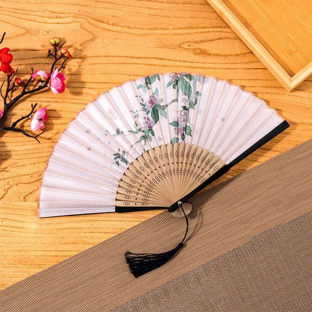 Винтажный складной веер в китайском стиле с бамбуковой ручкой, веер-реквизит, элегантный танцевальный веер, украшение для дома