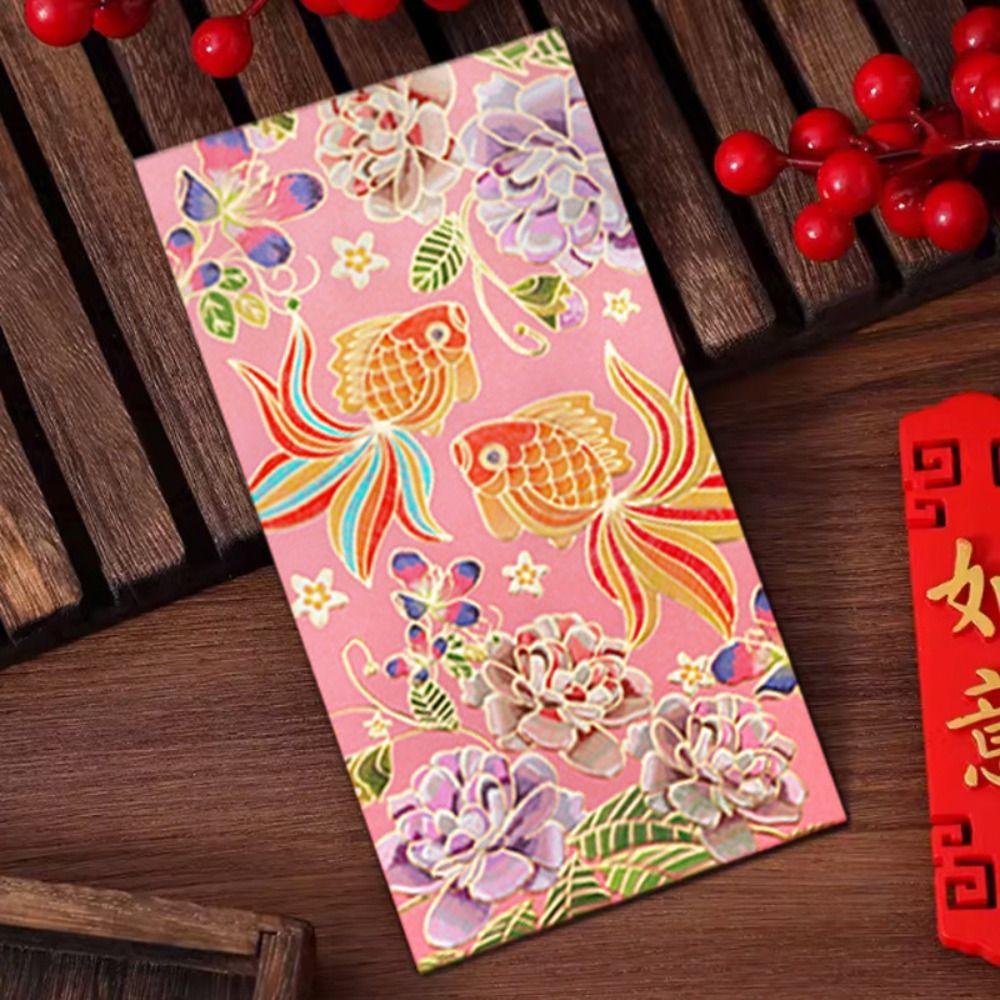 6 шт. Винтажные конверты для денег на удачу, красные карманные деньги, карманные новогодние красные конверты на китайский Новый год