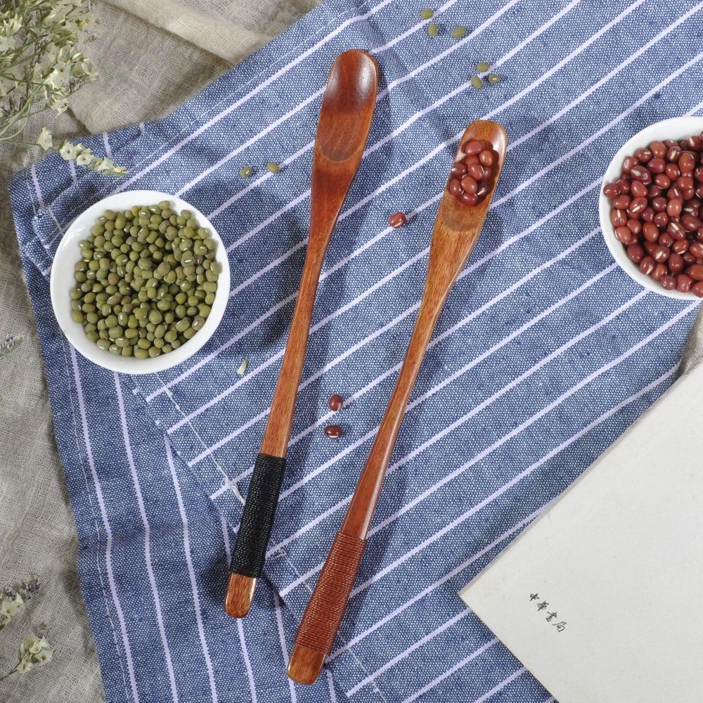 Dessert Sugar Mixing Long Handle Wooden Stirring Teaspoon Stirrer Coffee Scoop Espresso Spoon