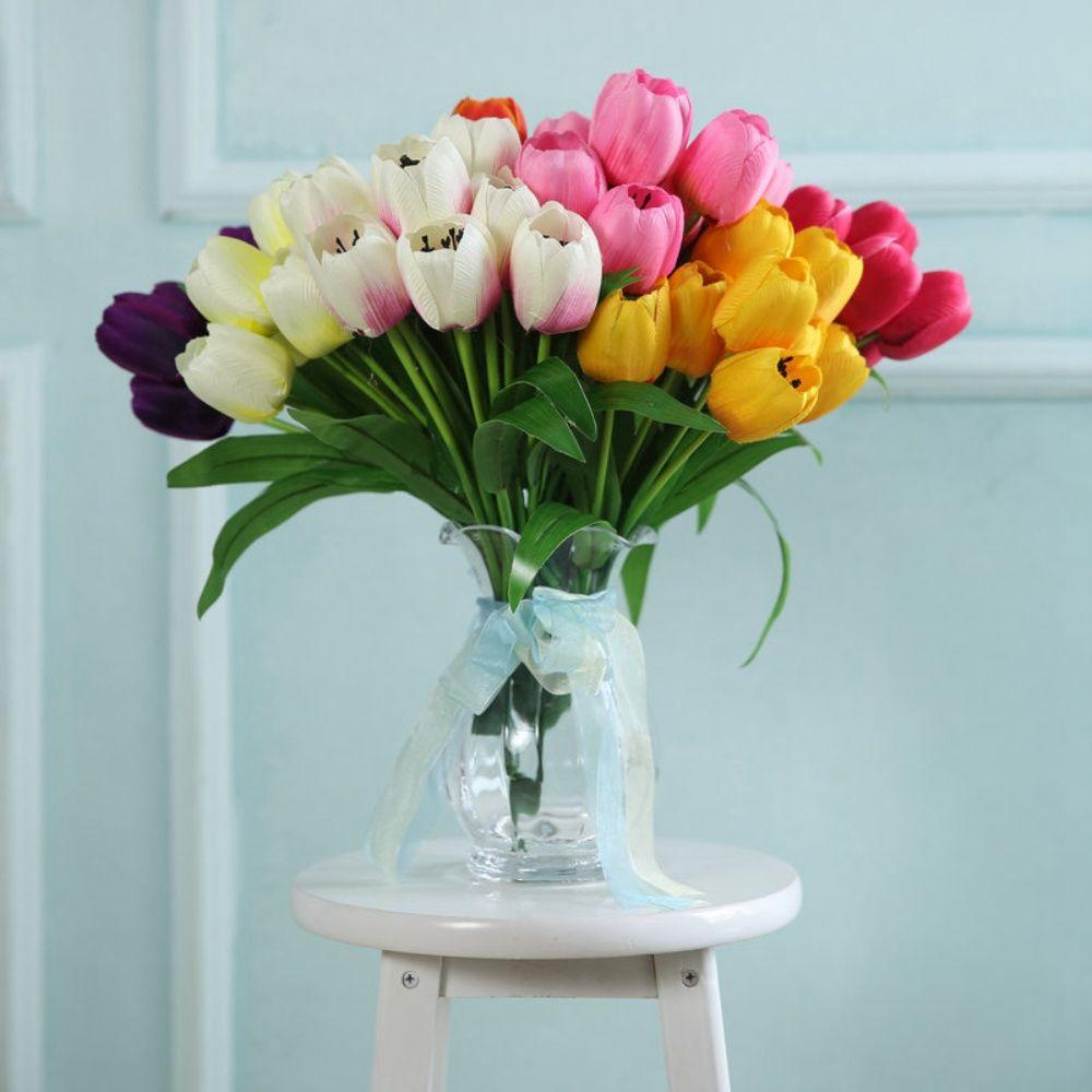 Сад 9 Голов Реалистичное Прикосновение Свадебное Украшение Дом Искусственный Цветок Искусственный Цветочный Букет Цветок Тюльпана