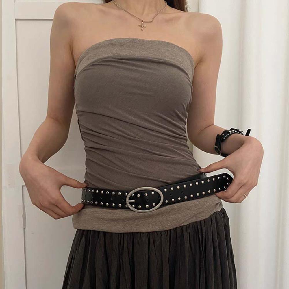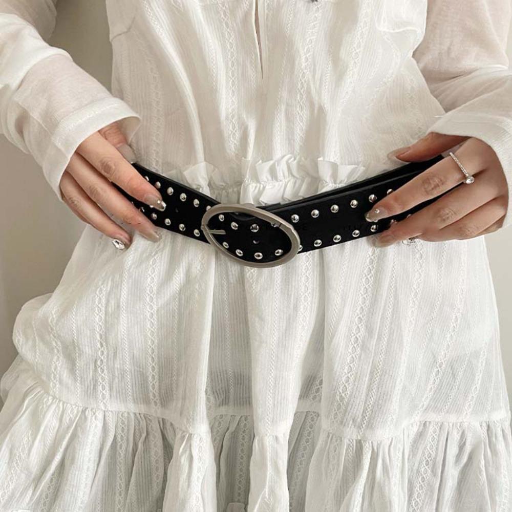 Adjustable Y2K Wide Belt Punk PU Leather Waistbands Vintage Rivet Waist Belt Summer