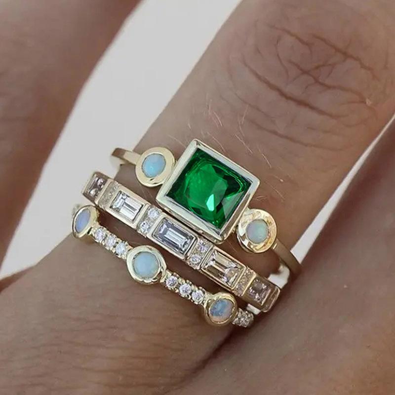 Золотые трехкомпонентные украшения, геометрическая элегантность, кольцо в придворном стиле, атмосферное кольцо