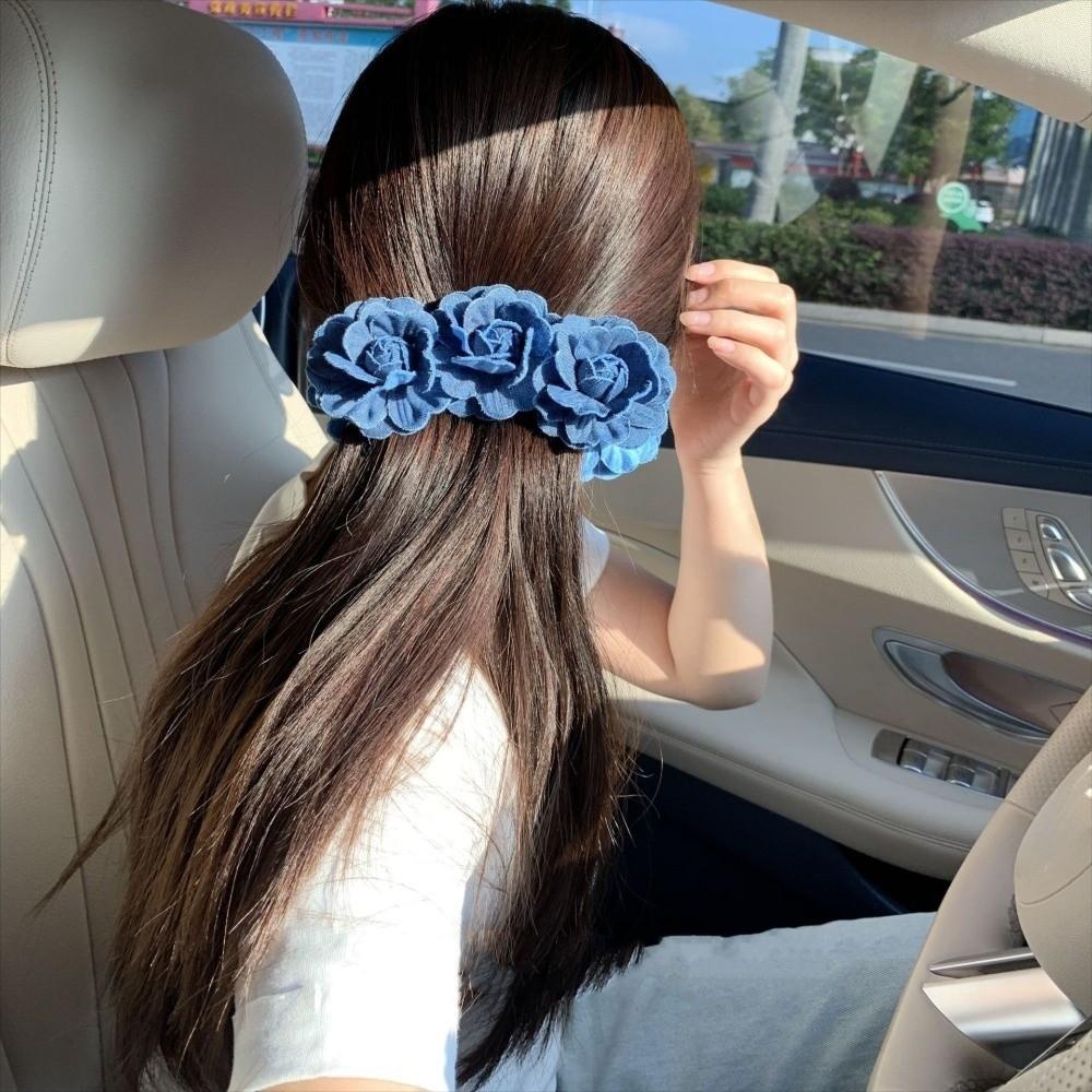 Заколки-бананы для волос в корейском стиле, синий деним с цветочным узором, закрученная заколка для волос, женская вертикальная заколка для работы