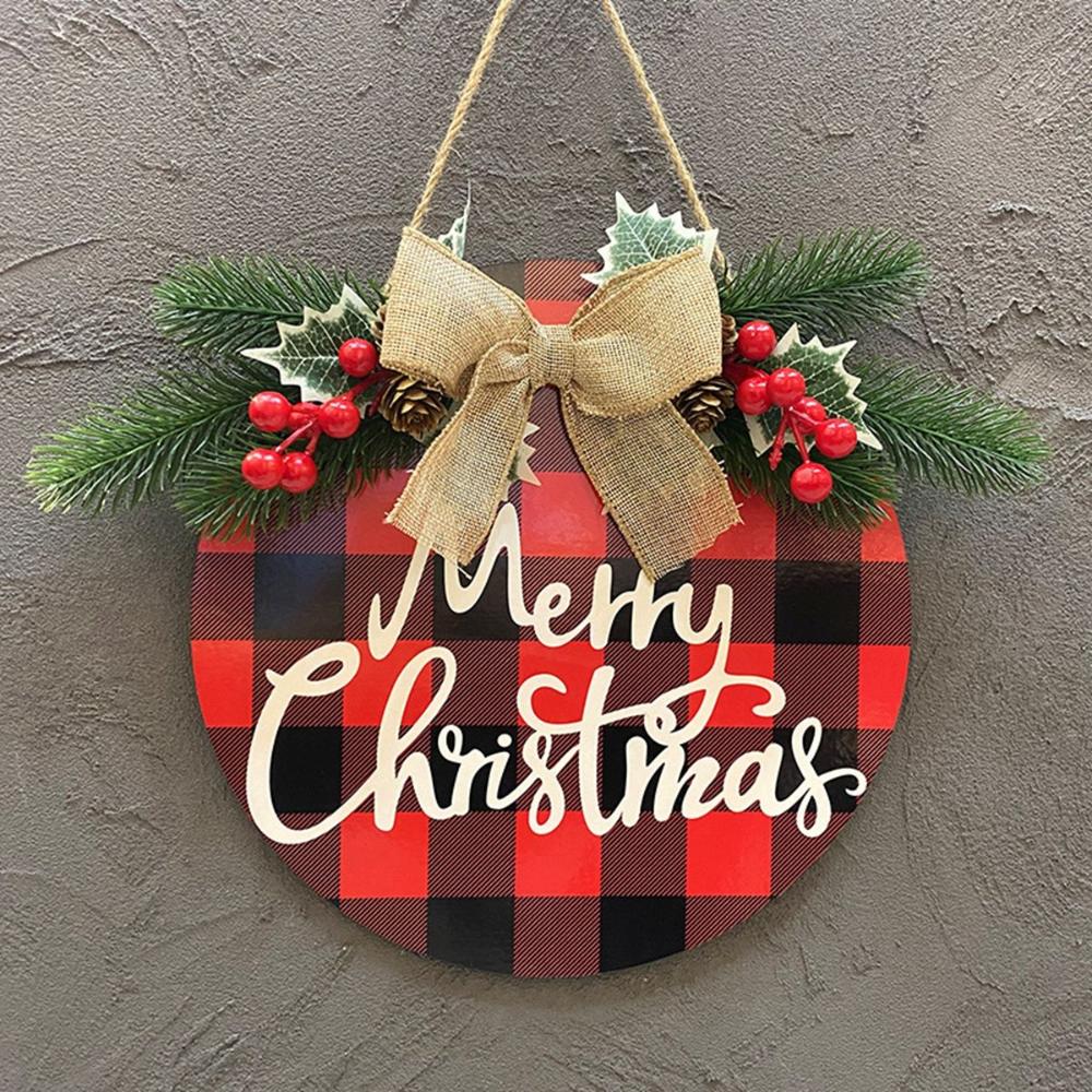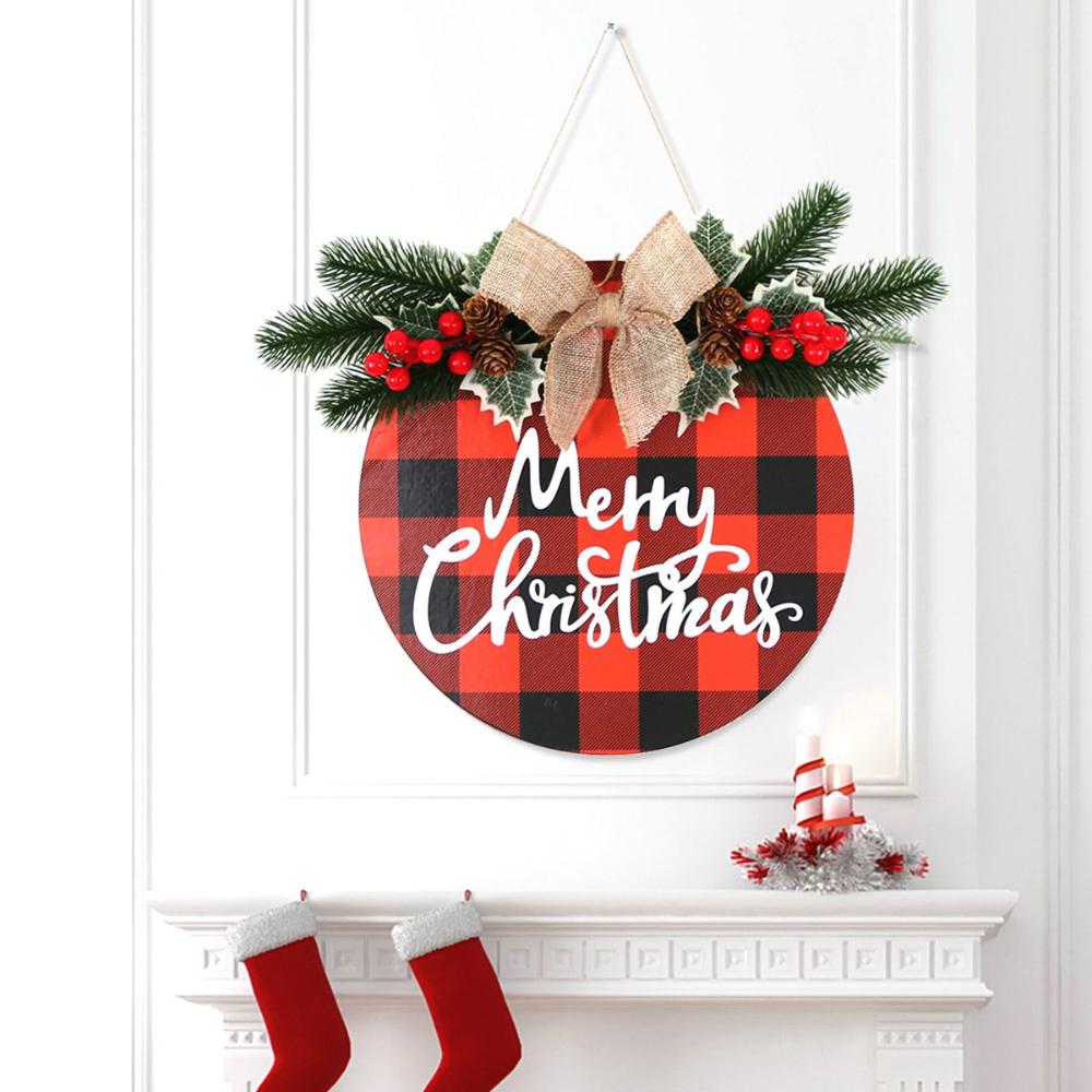 Farmhouse Rustic Burlap Indoor Outdoor Hanging Door Sign Artificial Wreath Garland Merry Christmas