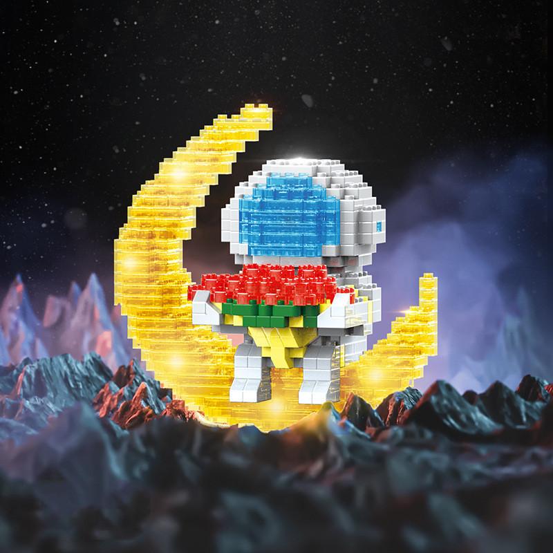Строительный блок астронавта, украшения, небольшой блок из гранул, сборная игрушка для декомпрессии (со светом