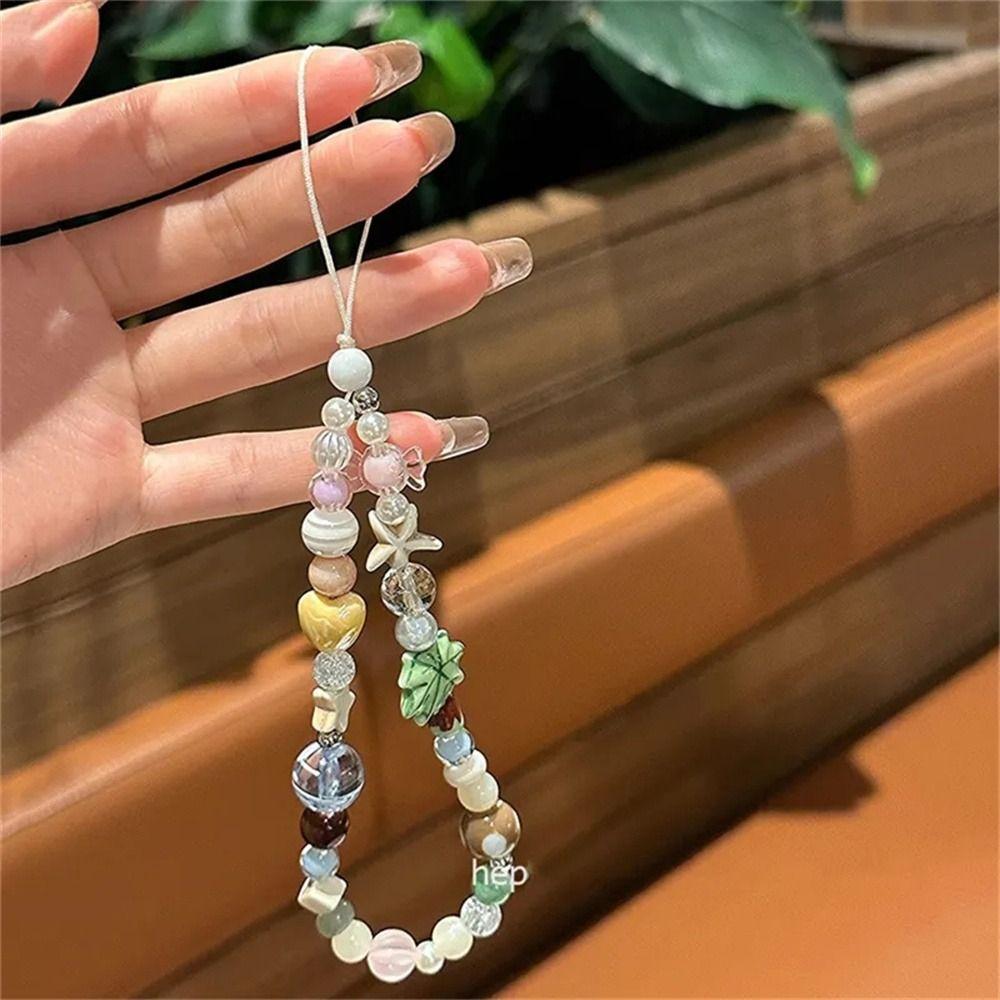 Coconut Tree Beaded Phone Strap Beach Starfish Smartphone Lanyard Pendant Decoration