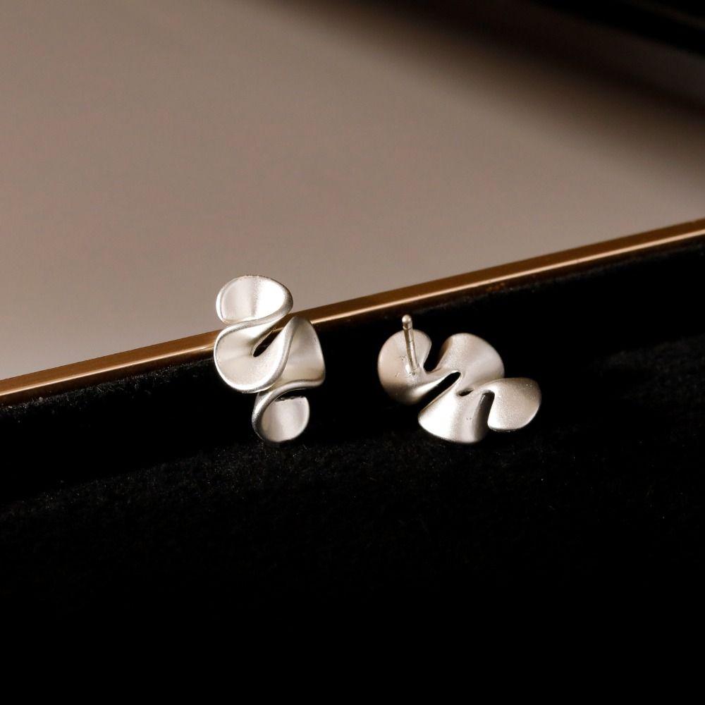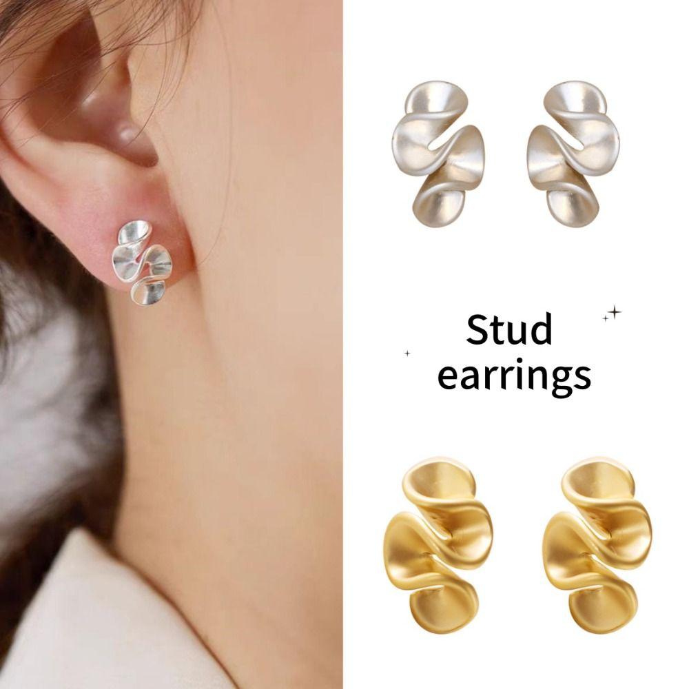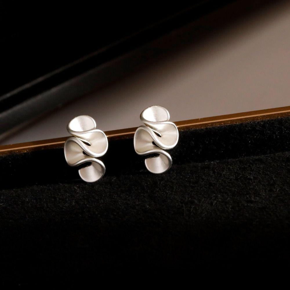 925 Серебряные плиссированные серьги-гвоздики Простые геометрические серьги-аксессуары для женщин Металлические серьги Подарок для дамы