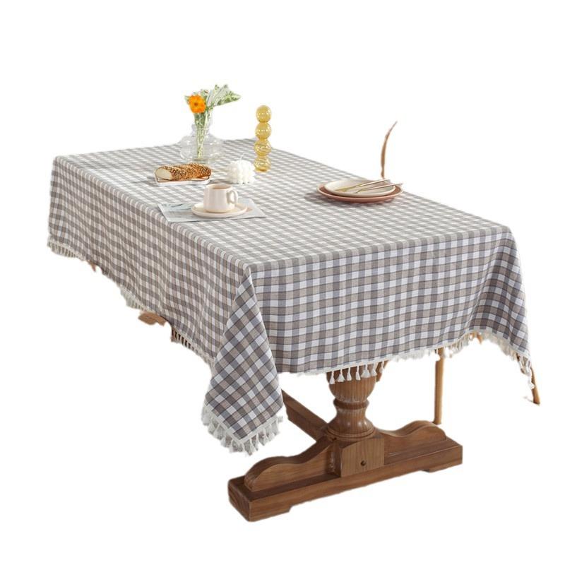 Серебристый цвет в клетку полиэстер бахрома скатерть геометрическая прямоугольная кофейный столик обеденный стол