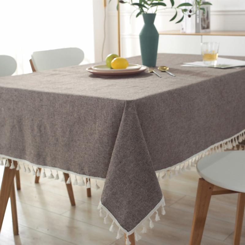 Простая полиэстерово-хлопковая скатерть в японском стиле, окрашенная пряжей, однотонная, с бахромой, геометрическая, прямоугольная, для кофейного столика, обеденного стола