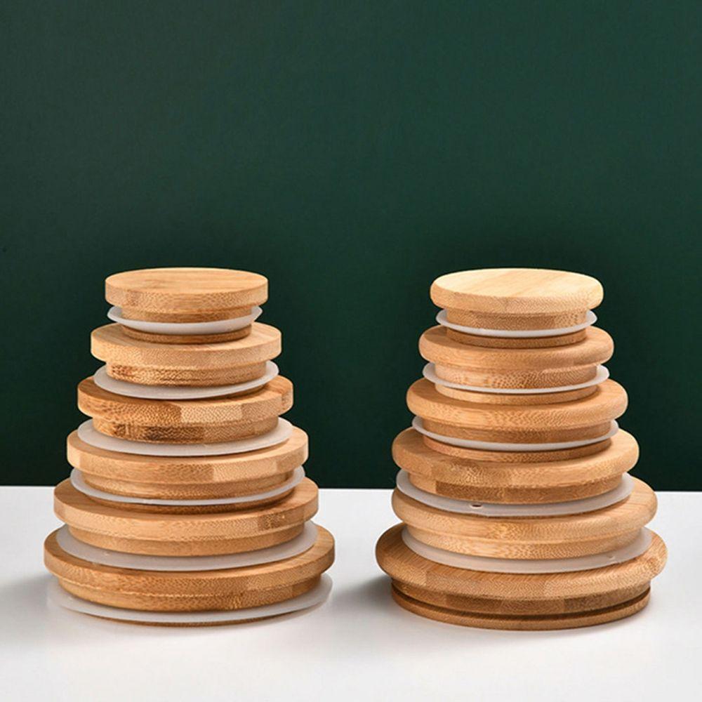 Wood Grain Clear Wooden Reusable Sealing Ring Cup Lid Tea Set Accessories Storage Tank Bamboo Cover