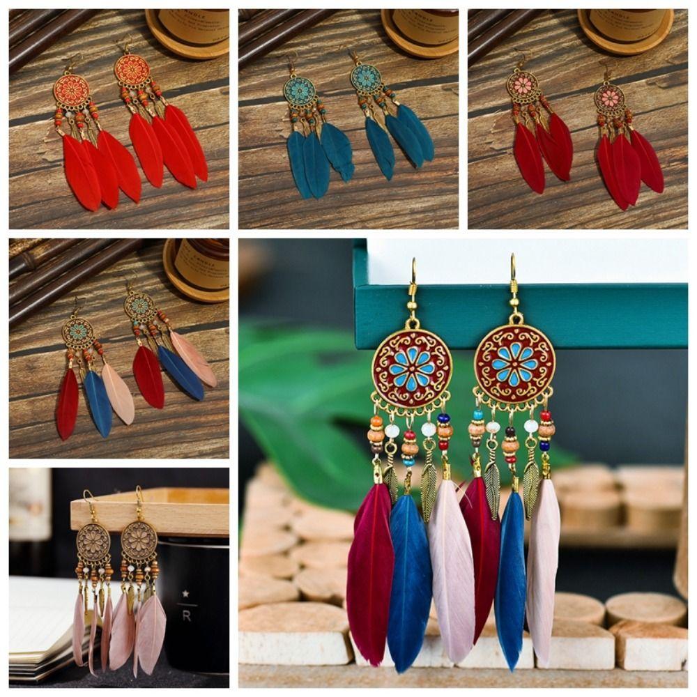 Zinc Zinc Zinc Alloy Bohemian Feather Dangle Earrings Bohemia Style Boho Drop Earrings Girl — купить товар онлайн с бесплатной доставкой по всему миру!