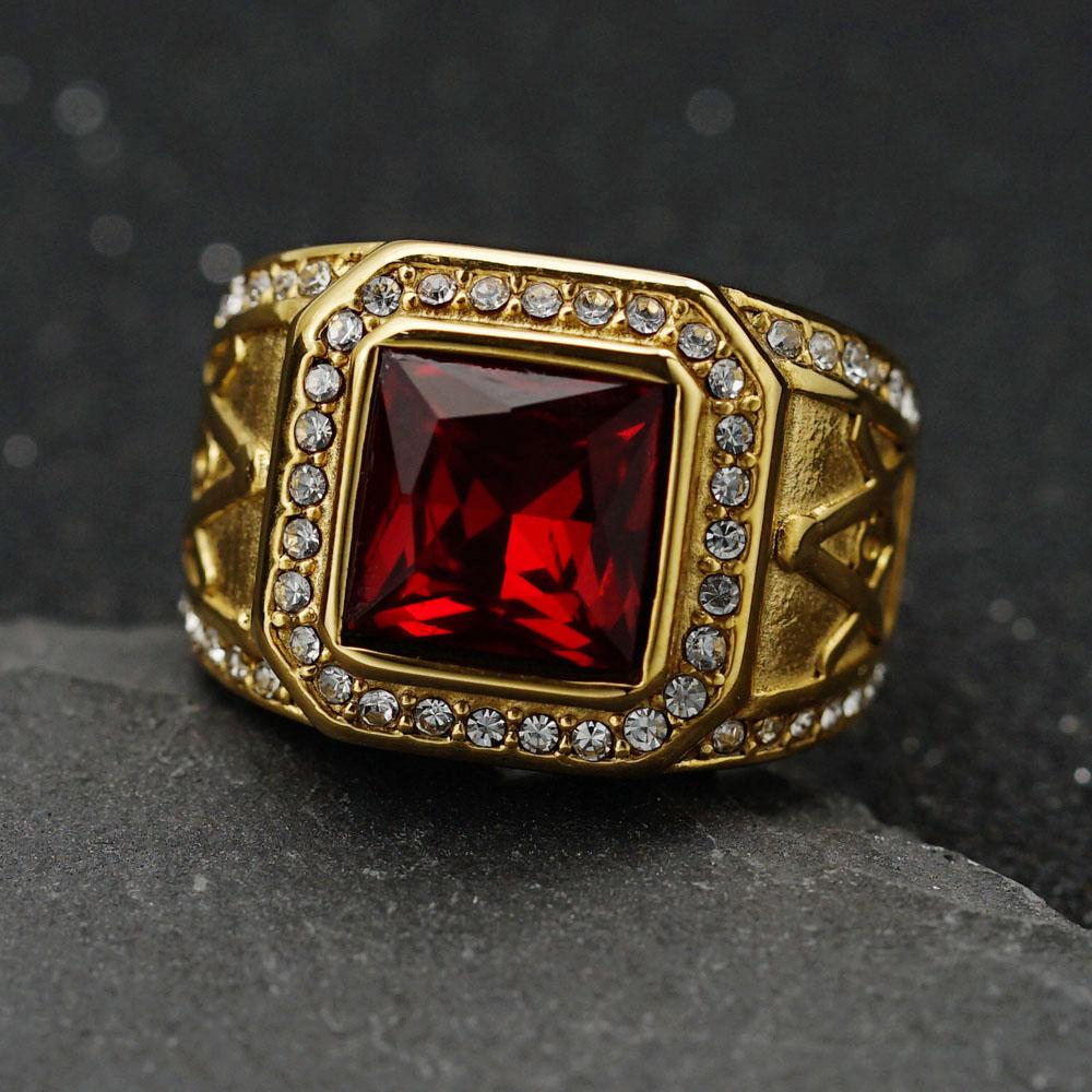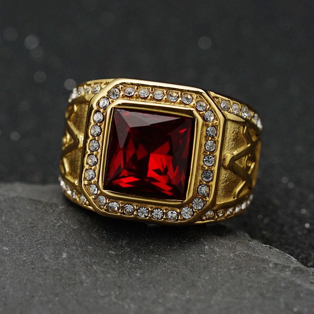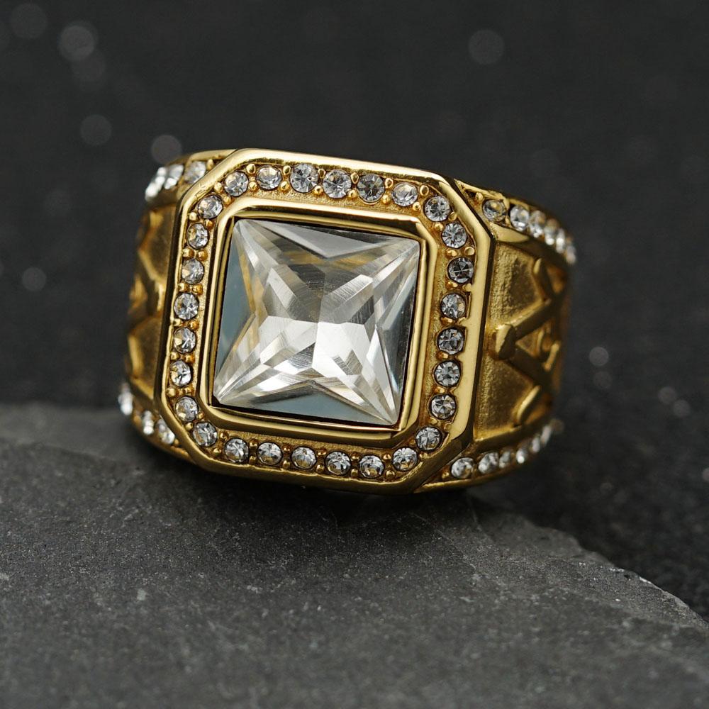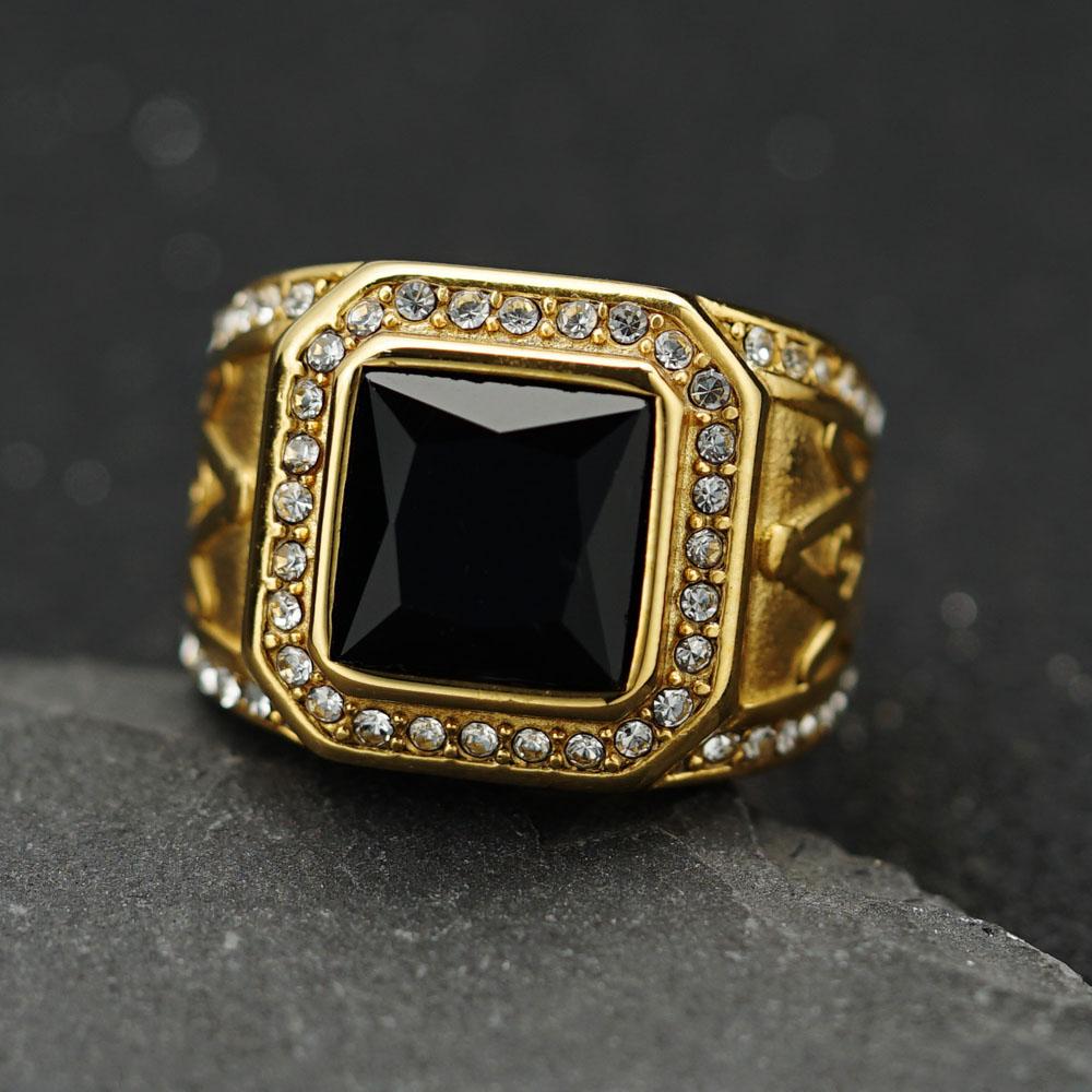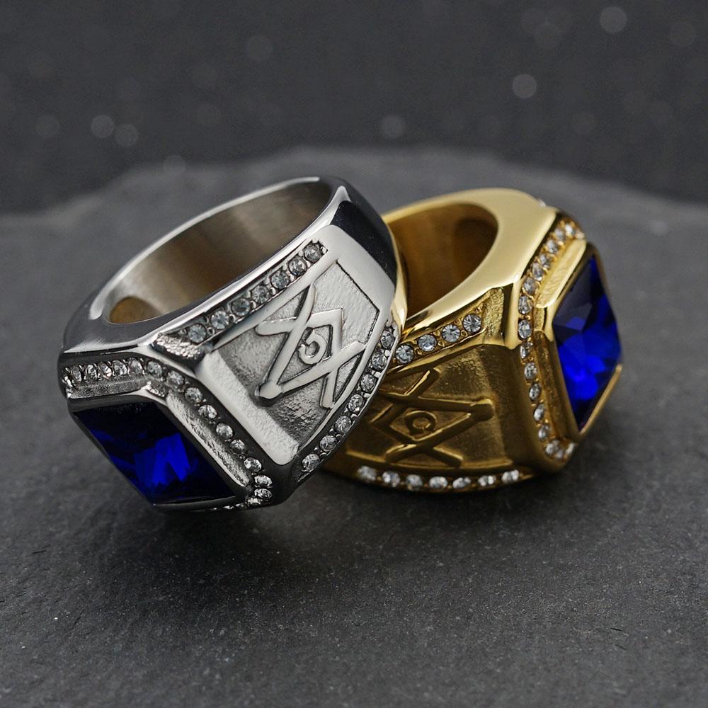 Кольцо из нержавеющей стали Винтажный золотистый цвет страз Мужской Хип-хоп Рок Мужской женский Ретро Свободный каменщик Масонство Масонские украшения