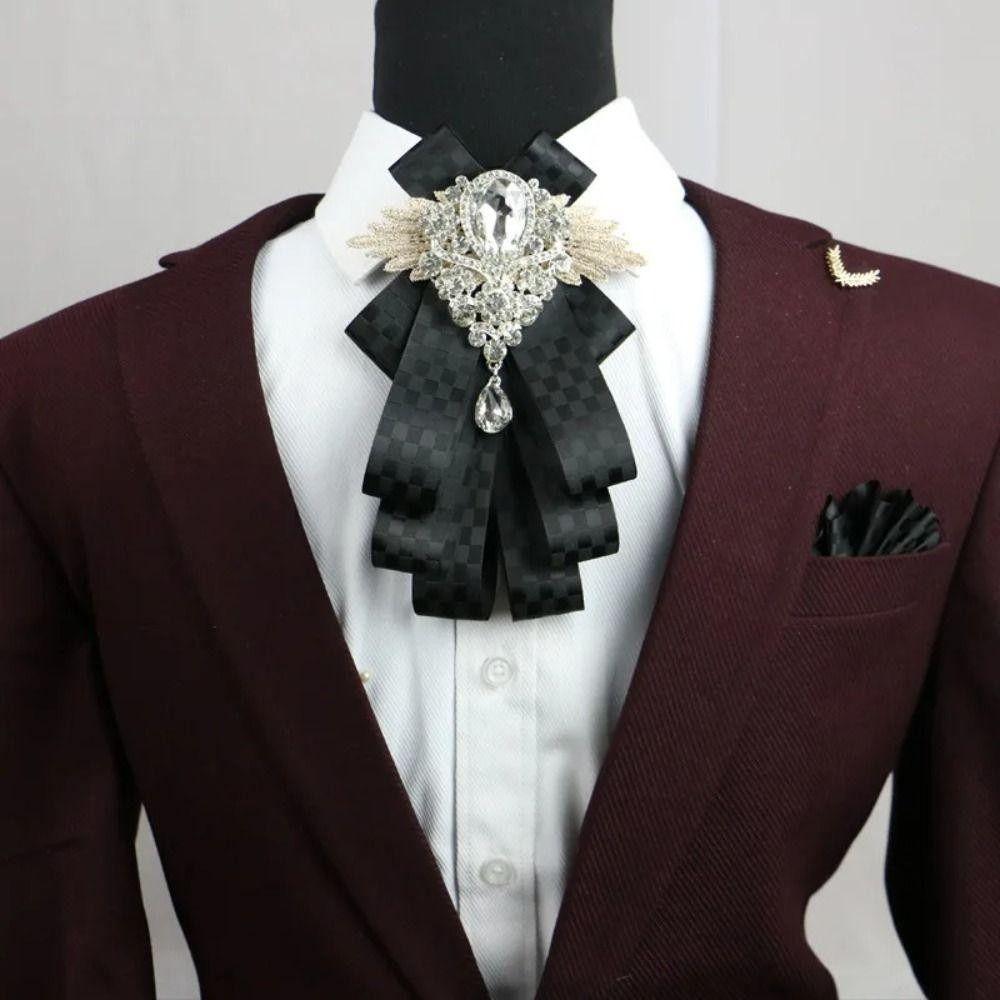 Crystal Gentleman's Bow Tie Retro Men's Suit Accessory Formal Rhinestone Collar Flower Groomsman