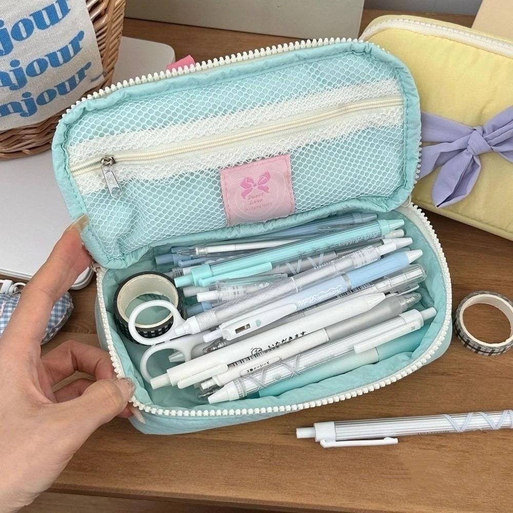 Настольное хранение Пенал в корейском стиле Большой вместимости Бант Пенал с бантом Сумка для канцелярских принадлежностей с бантом Офис