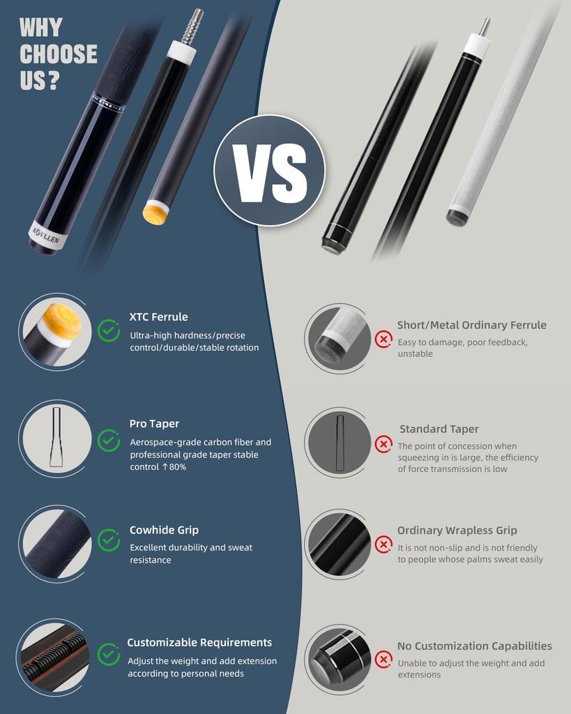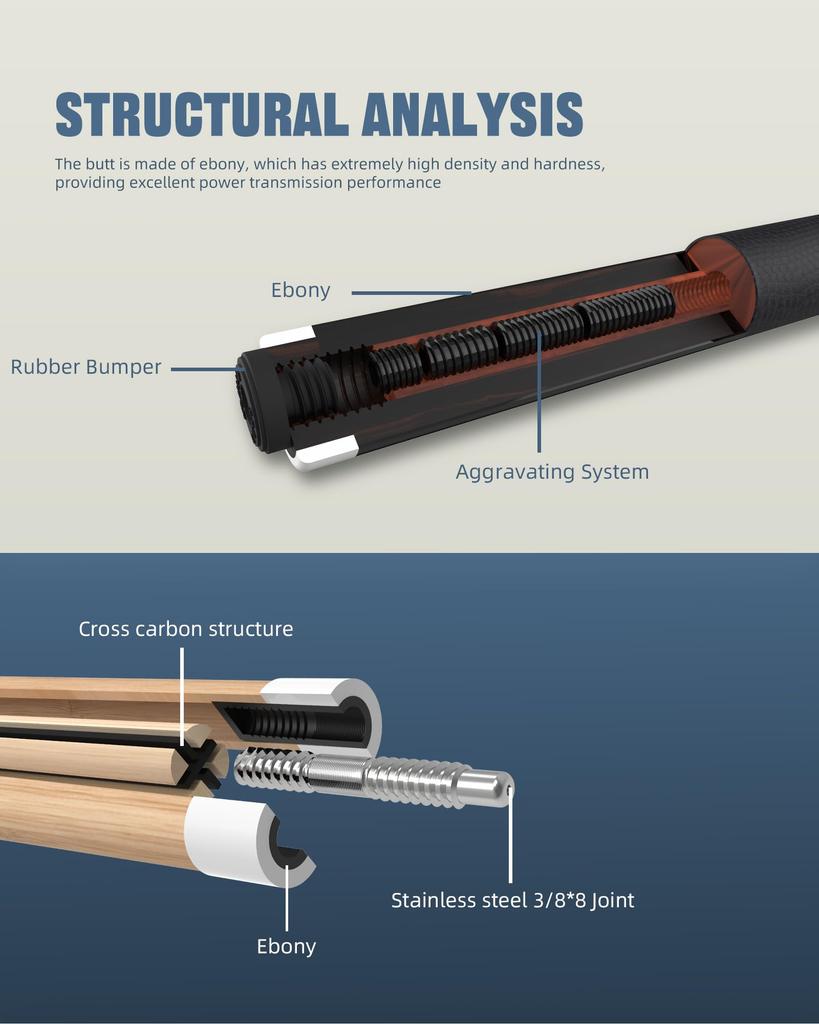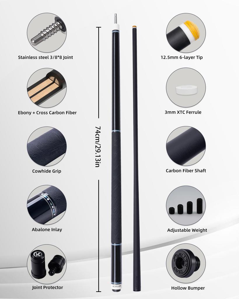 KONLLEN Кий для пула из углеволокна, нижняя часть, 147 см, инкрустация, низкий прогиб, 11,8/12,6 мм