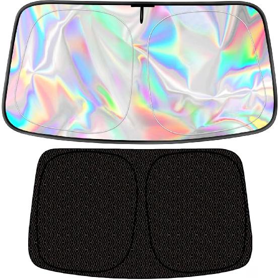 Автомобильный солнцезащитный козырек на лобовое стекло, 5-слойный светоотражающий, блокирует УФ и тепло, прочный складной козырек с металлическим каркасом, радужный цвет, сохраняет салон автомобиля
