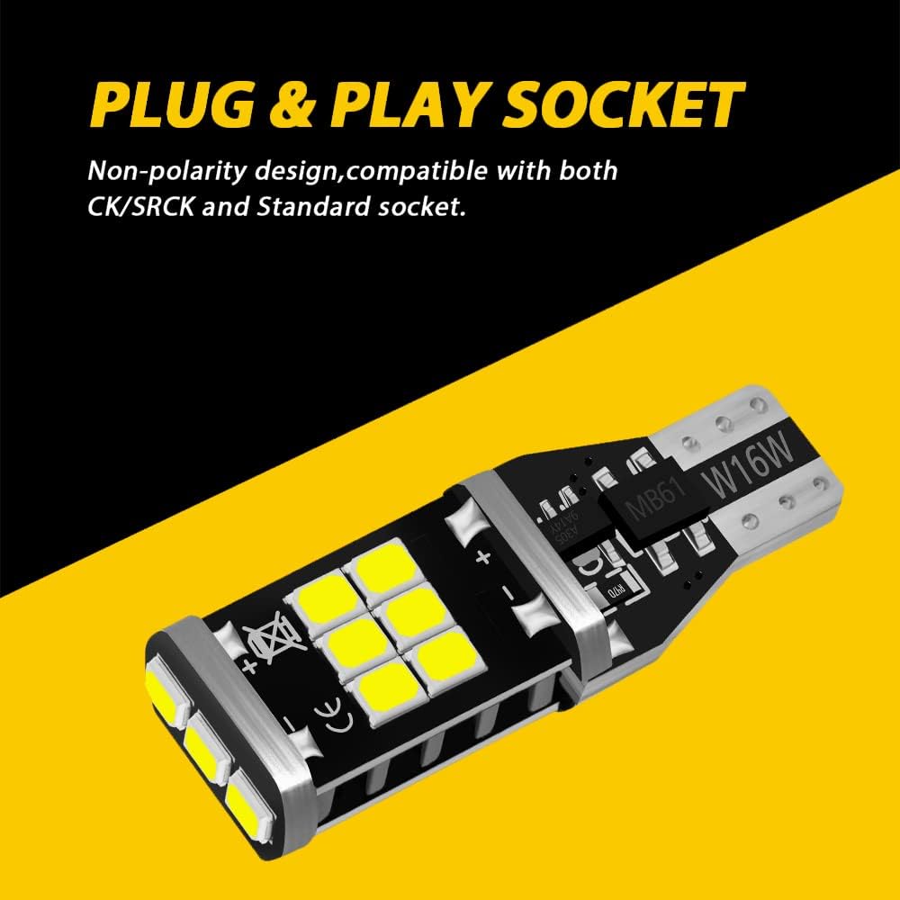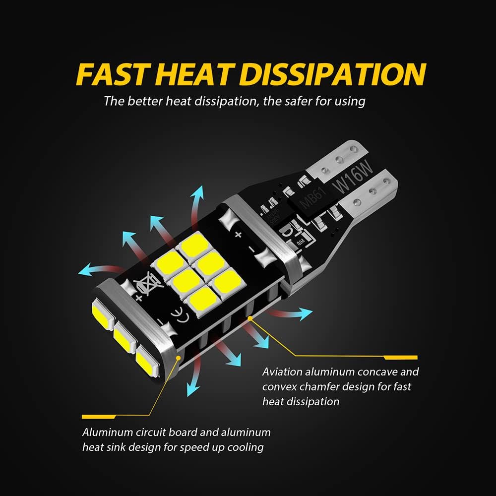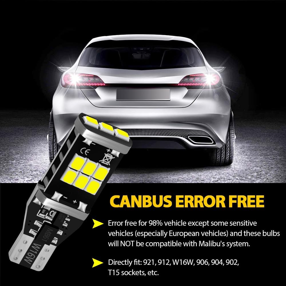 AUXLIGHT 921 912 906 904 T15 W16W 921A Error Free Back Up Reverse 3Rd Brake Center High Mount Stop Light Bulbs, Super Bright High Power 6000K Xenon
