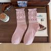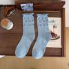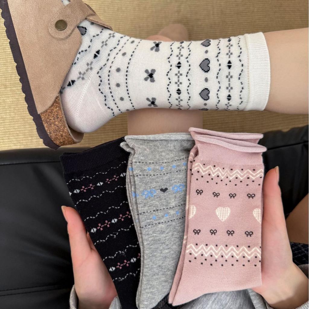 Белые гольфы до середины голени, стиль бантик любовь, носки из хлопка с подвернутым краем, корейский студенческий стиль
