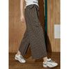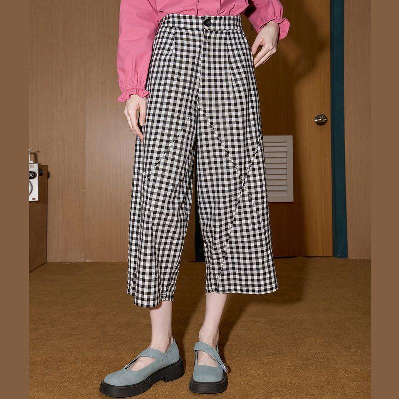 Coolhut Plaid Patchwork Design Casual Pants for Women 2025 Summer New Loose Wide-Leg Cropped Pants