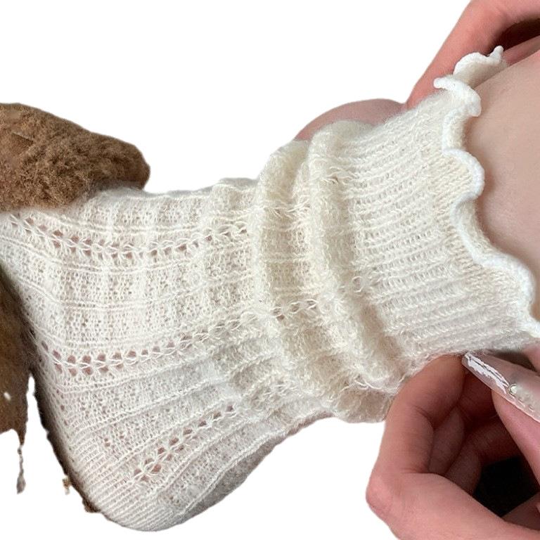 Носки с опушкой из грибной кромки, шерстяные, сезонные, новый продукт, утолщенные, теплые, однотонные, женские кружевные носки средней длины