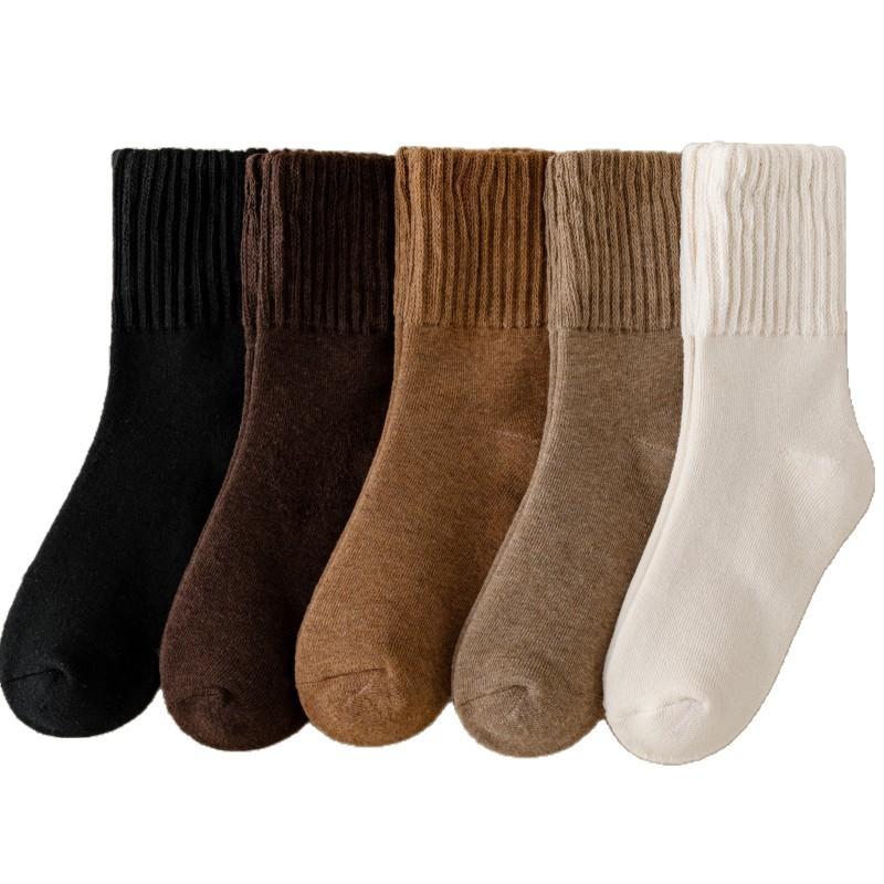 Cross-Border Terry Socks, Medium Socks, Thickened Warm Sleeping Socks, Winter Fleece Solid Color Confinement Socks