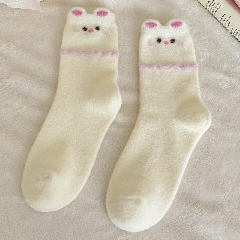 Cute Socks Medium Tube Socks Thickened And Plush Warm Cartoon Cute Three-Dimensional Kitten Plush Socks Sleeping Socks