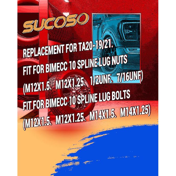 10 Spline Lug Nut Key Replacement For TA20-19/21 Fit Bimecc M12X1.5 M14X1.5 10 Spline Lug Nuts And Lug Bolts, 10 Point Lugnut Socket With 3/4"(19Mm)