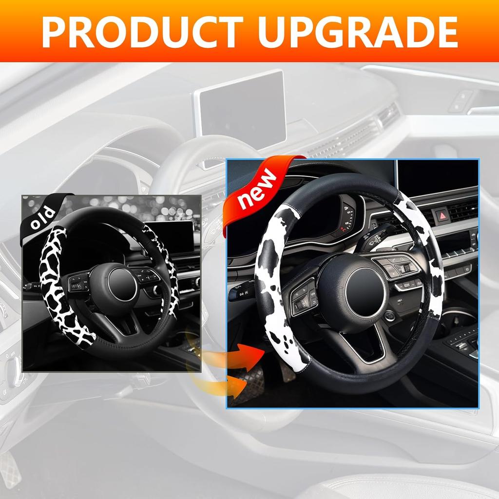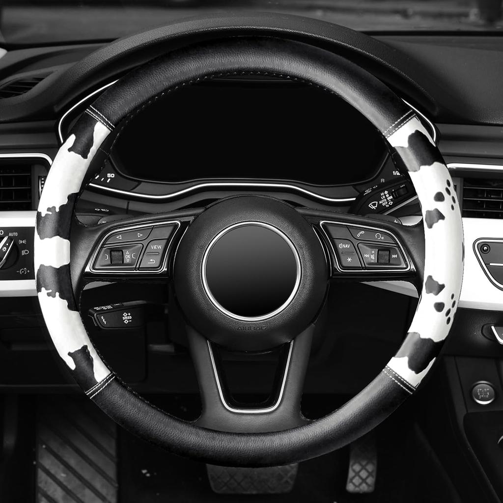 Cow Print Steering Wheel Cover, Universal 14.5-15 Inch Breathable Microfiber Leather Anti-Slip Car Steering Wheel Protector For Women Men,