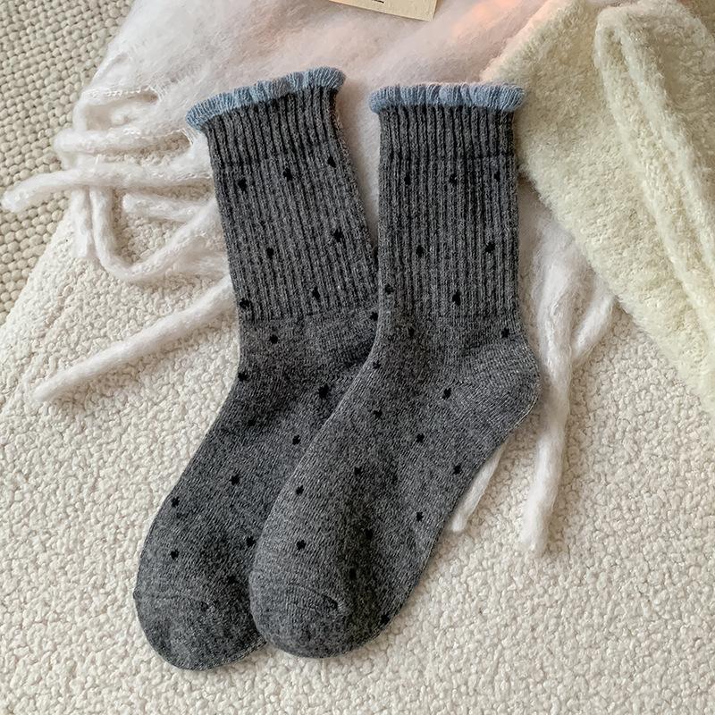 Polka Dot Wool Socks Children'S Stacking Socks Season Warm Retro Color Matching Lace Winter Velvet Thickened Stacking Socks