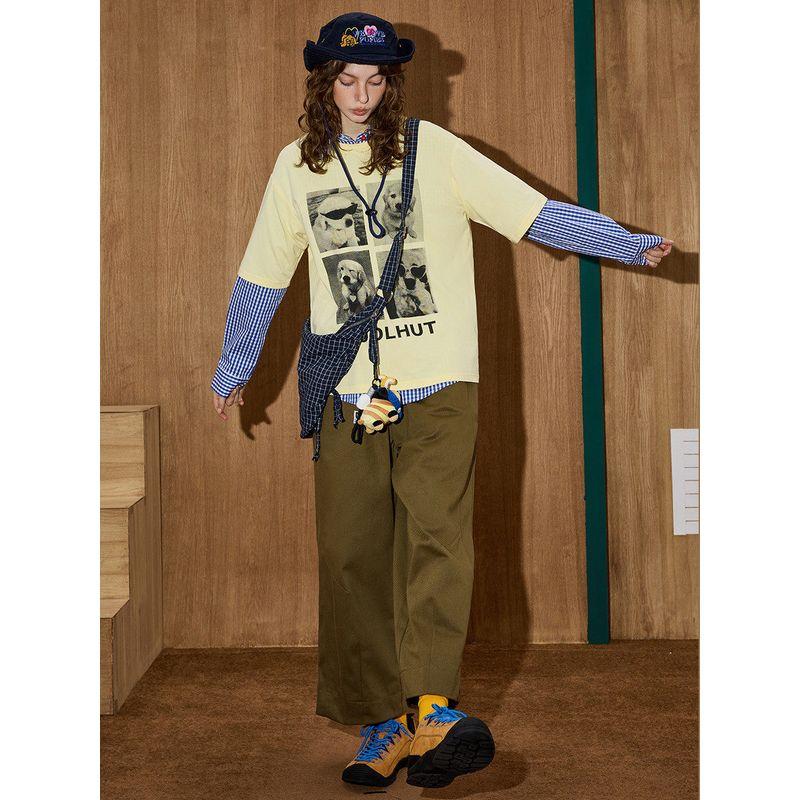 Coolhut Pure Cotton Army Green Wide-Leg 2025 Autumn New Women's Versatile Loose Straight Casual Pants