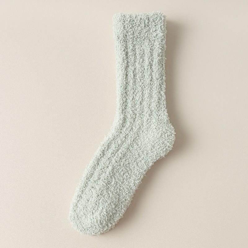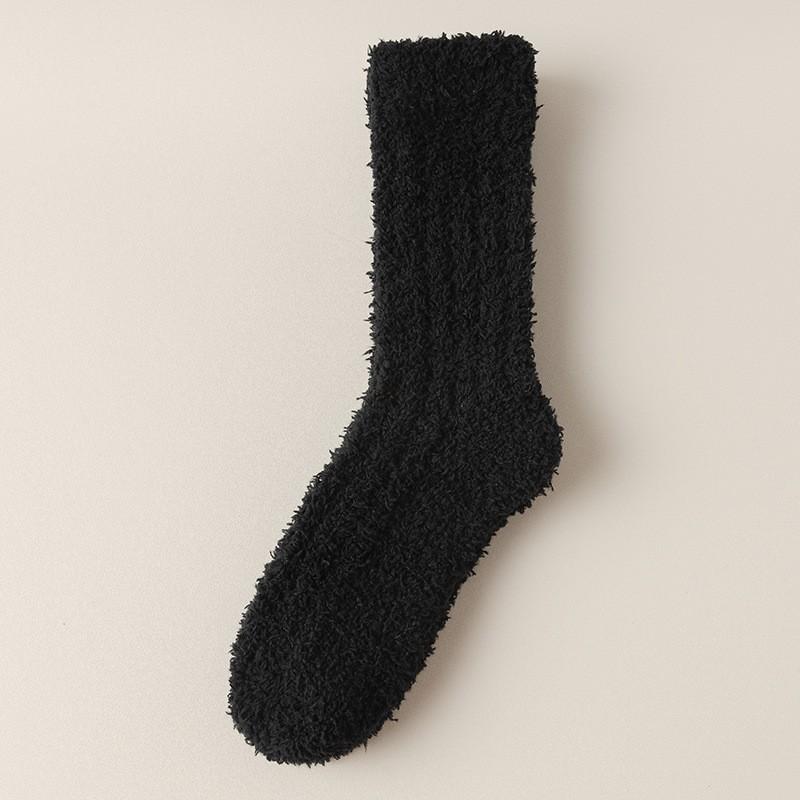 Coral Fleece Socks Solid Color Medium Tube Socks Season Fleece Thickened Warm Furry Home Floor Sleeping Socks