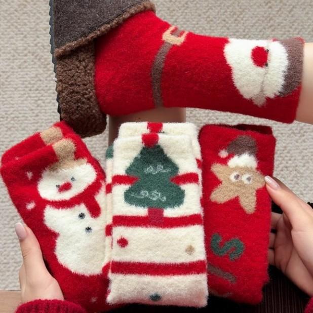 Christmas Stockings Medium Tube Socks Red Socks Plush Warm Australian Velvet Thickened Cute Cartoon No Hair Loss Sleep Stockings