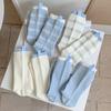 Весенне-осенние кремовые носки до середины голени в нежную голубую полоску, с милой тканевой этикеткой с сердечком, двойной иглой, махровые носки для женщин