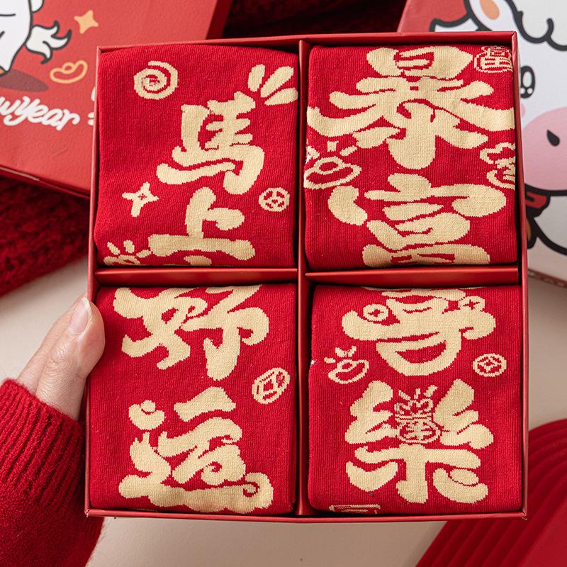 Новогодняя подарочная коробка, Красные носки, Те же носки средней длины на год Лошади, Праздничные носки большого красного цвета из чистого хлопка без косточек