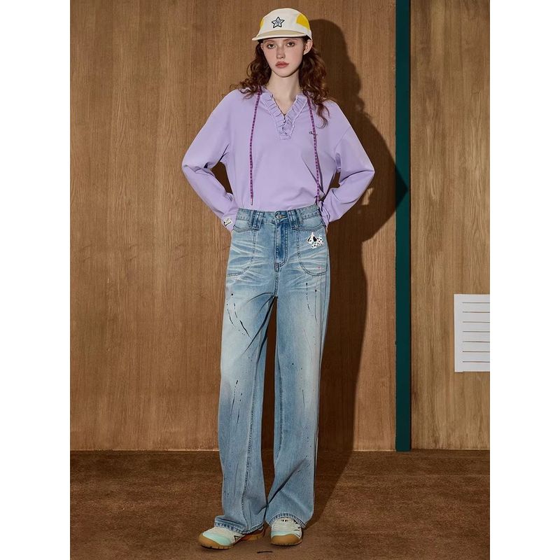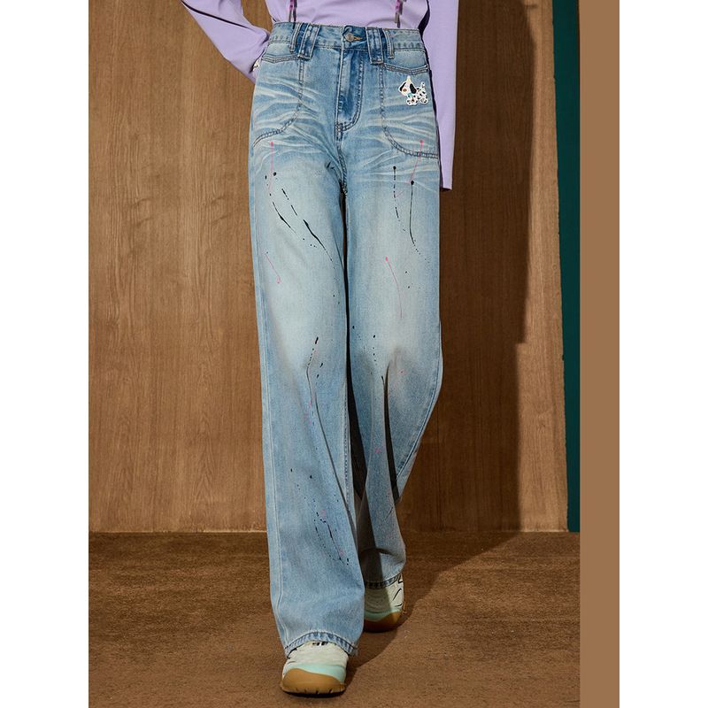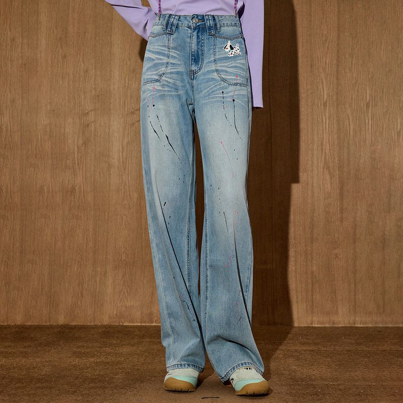 Coolhut Американский Хай-стрит Ретро Дизайн Граффити с Брызгами Чернил Свободные Выстиранные 2025 Осень Женские Джинсы