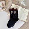Korean Striped Cloth Label Cute Bear Mid-Tube Socks Contrasting Boneless Cotton Socks