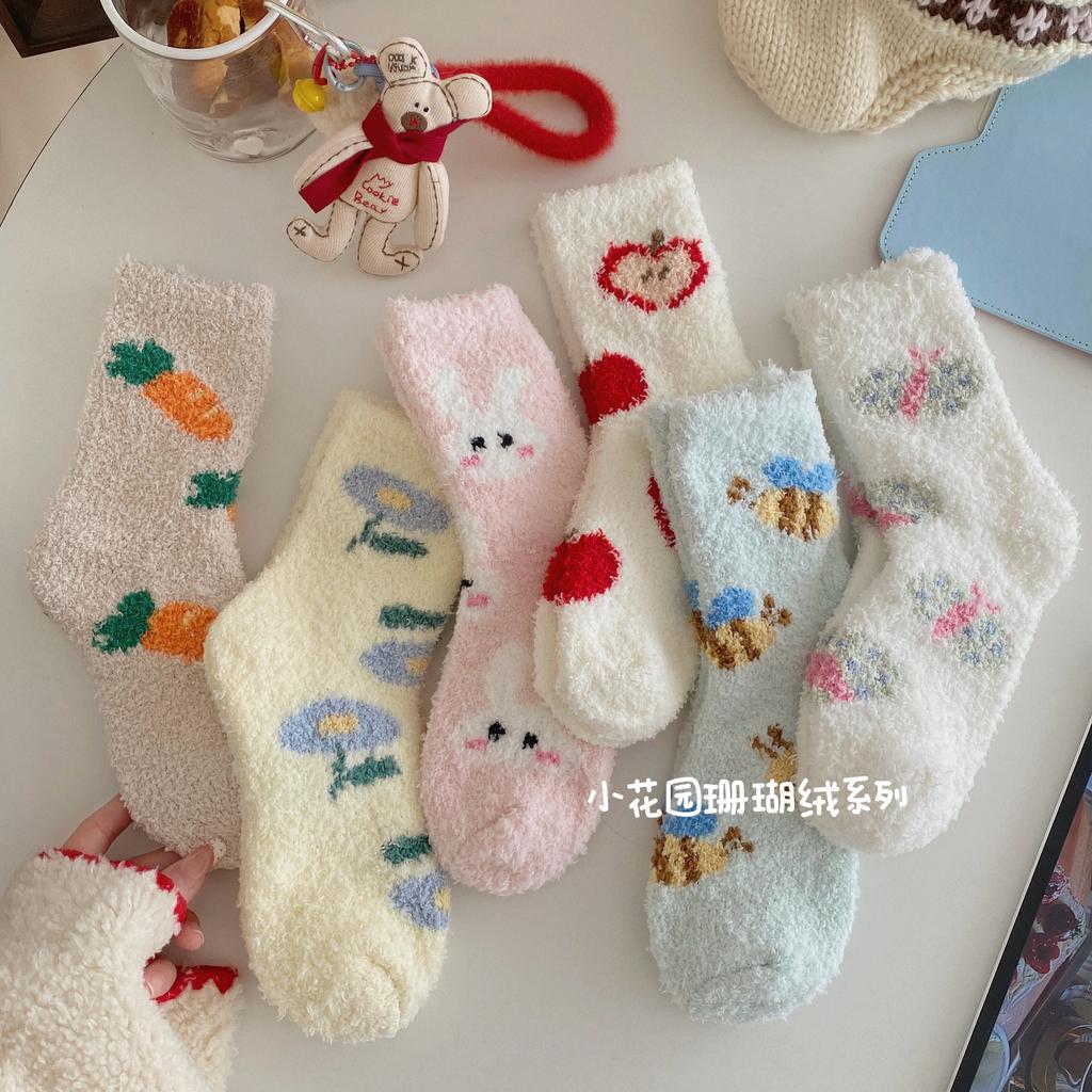 Милые носки из кораллового флиса, плюшевые хлопковые носки, утолщенные домашние носки для сна, теплые пушистые напольные носки, зимние