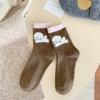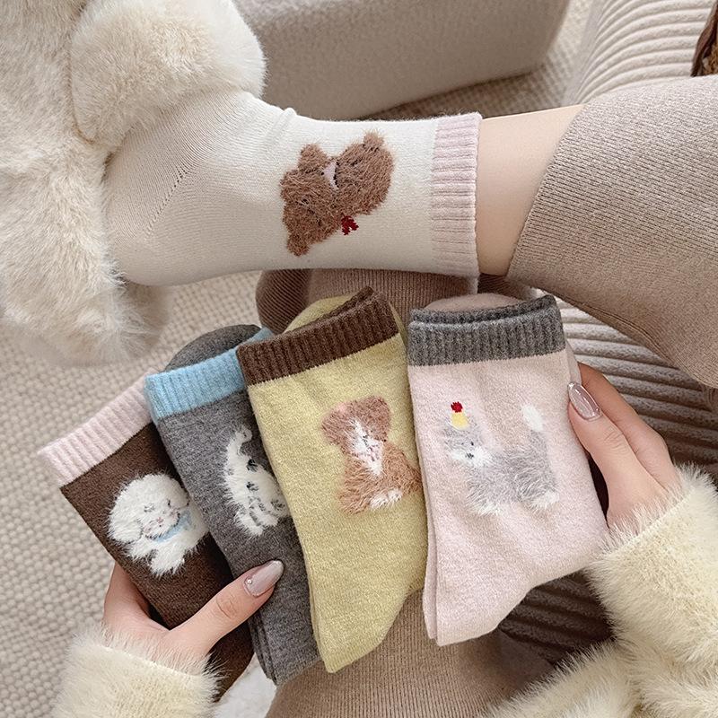 Grey Puppy Socks Warm Moorse Thickened Fleece Warm And Cute Cartoon Animal Tide Stockings