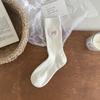 Solid Color Style Double Needle Simple Stacked Socks Medium Tube Socks Girls' Stockings Embroidered Bow Boneless Vertical Strips