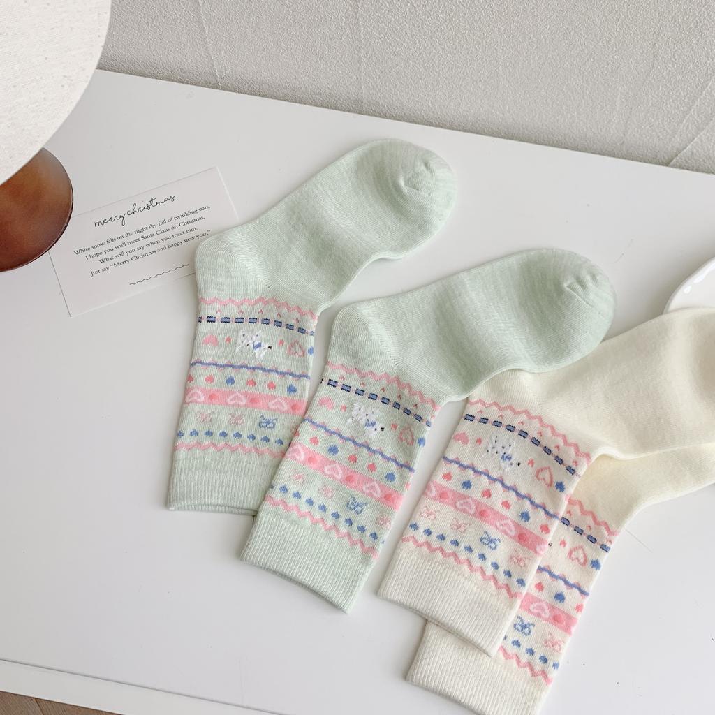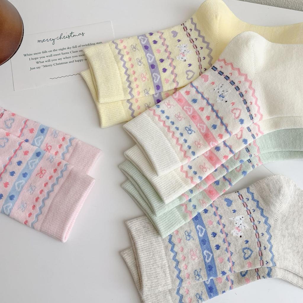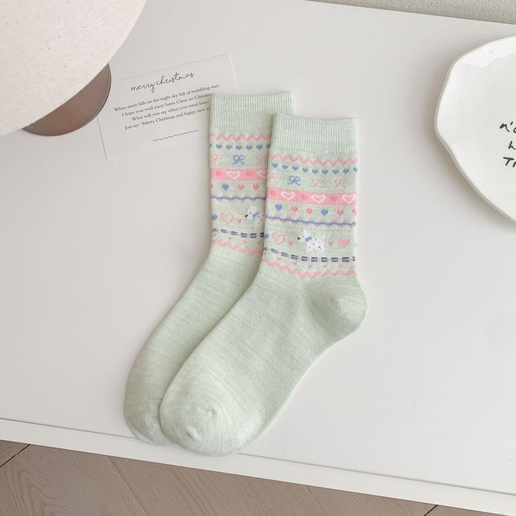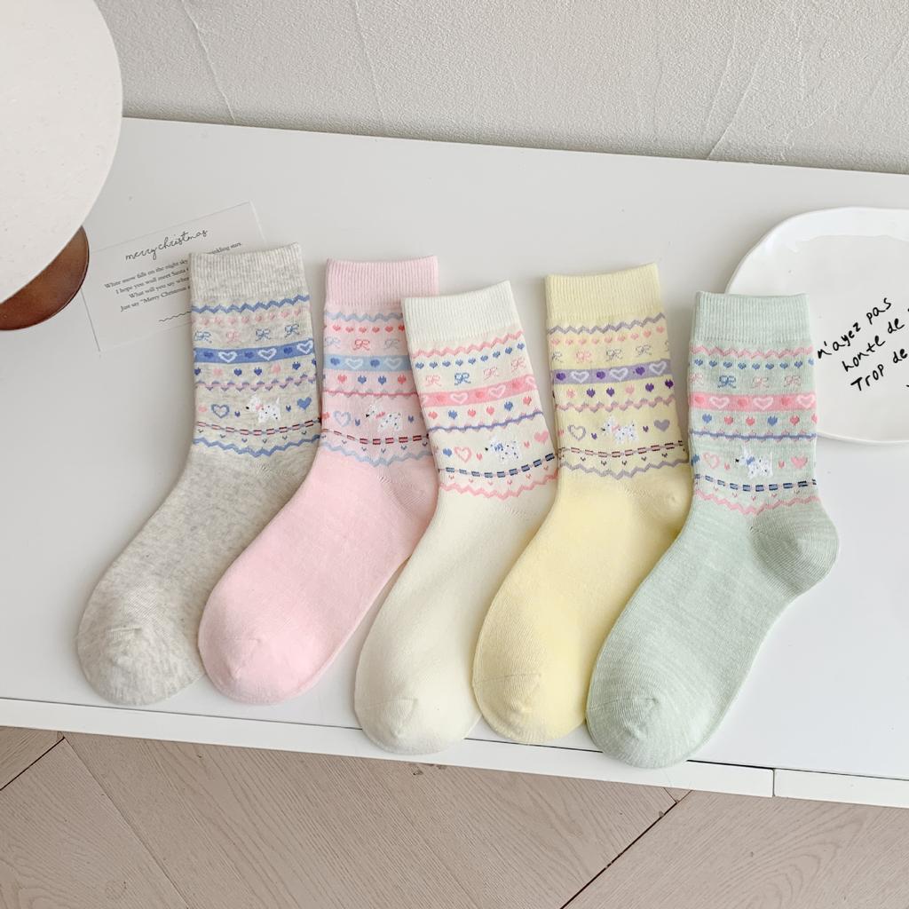 Socks Women'S Mid-Tube Socks Cute Bow Pile Socks Polka Dot Dog Vintage Light Gray Women'S Socks