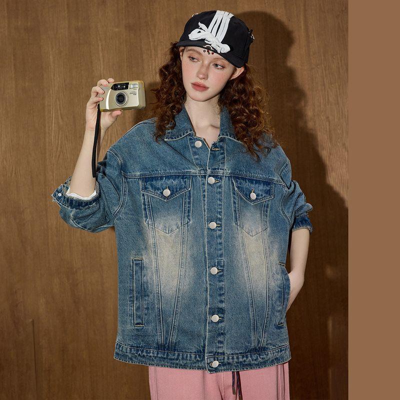 Coolhut American Retro Loose and Versatile Distressed Denim Jacket 2025 Autum Women's Fashion Jacket