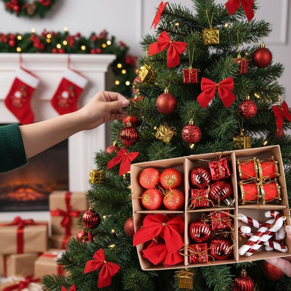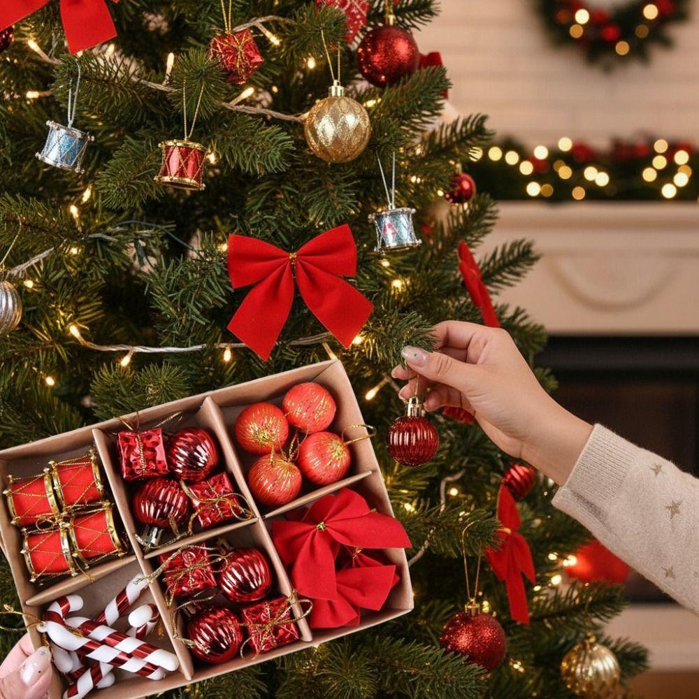 24Pcs/set Glitter Christmas Ball Ornament Set Colorful Christmas Hanging Ornaments New Year Party