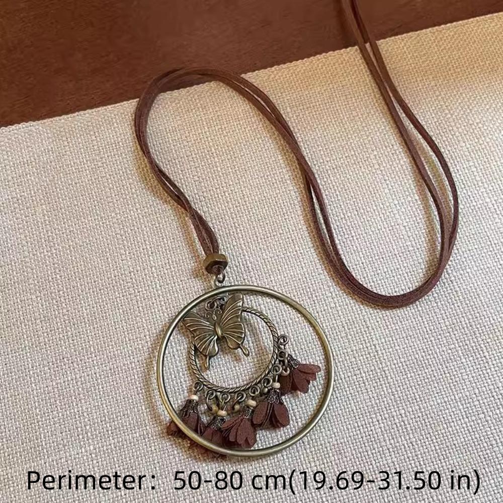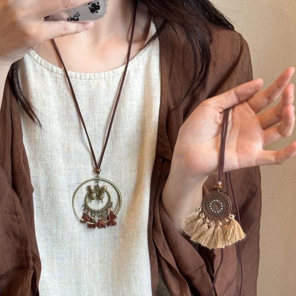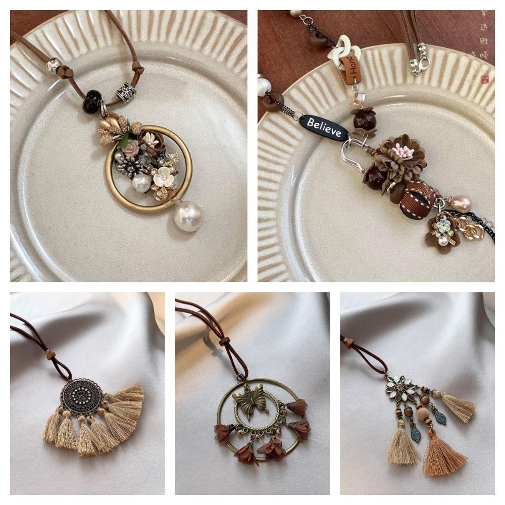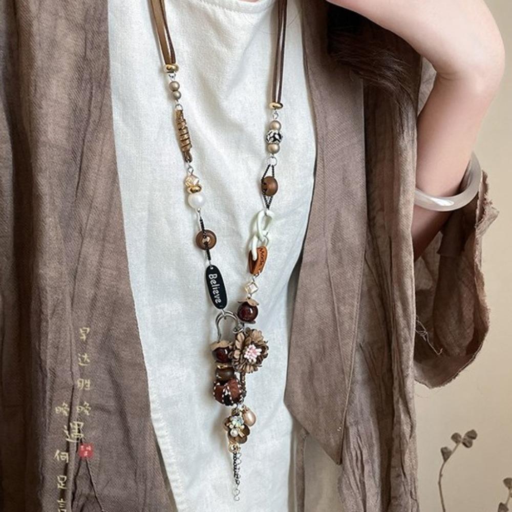 Деревянное этническое ожерелье с цветком в богемном стиле, ретро длинная цепочка для свитера, женское