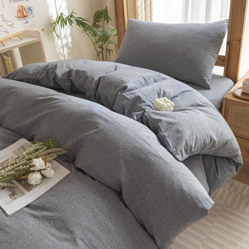 Хлопок Стиранный Хлопок Односпальное Постельное Белье Пододеяльник Студенческое Общежитие Чистый Хлопок Постельное Белье Комплект из Четырех Предметов Простыня Пододеяльник Простой Комплект из Трех Предметов